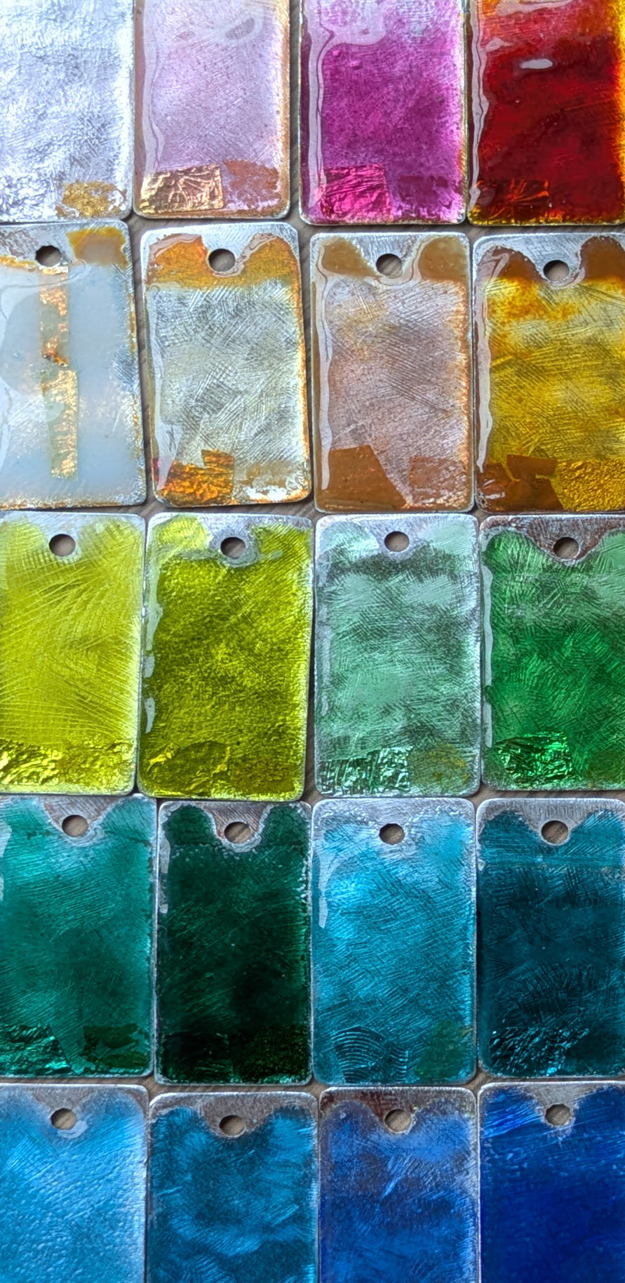 Il faut superposer les couches et recuire plusieurs fois pour obtenir des teintes profondes et riches. Le travail demande de la patience, mais c’est à chaque fois un plaisir de voir les couleurs prendre vie.